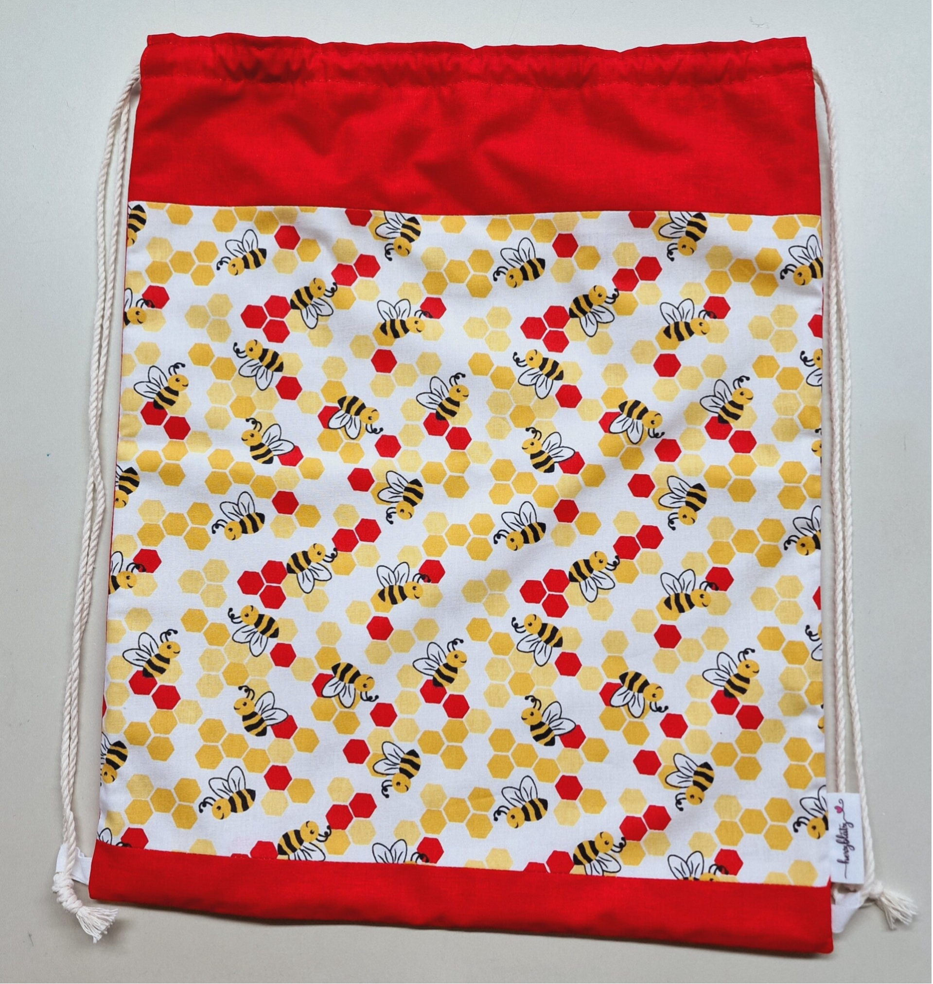 Bag aus Baumwolle mit Innenfutter. Süsses Bienenmuster ideal für Spielgruppe und Kindergarten.