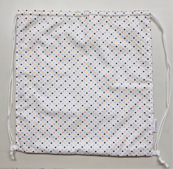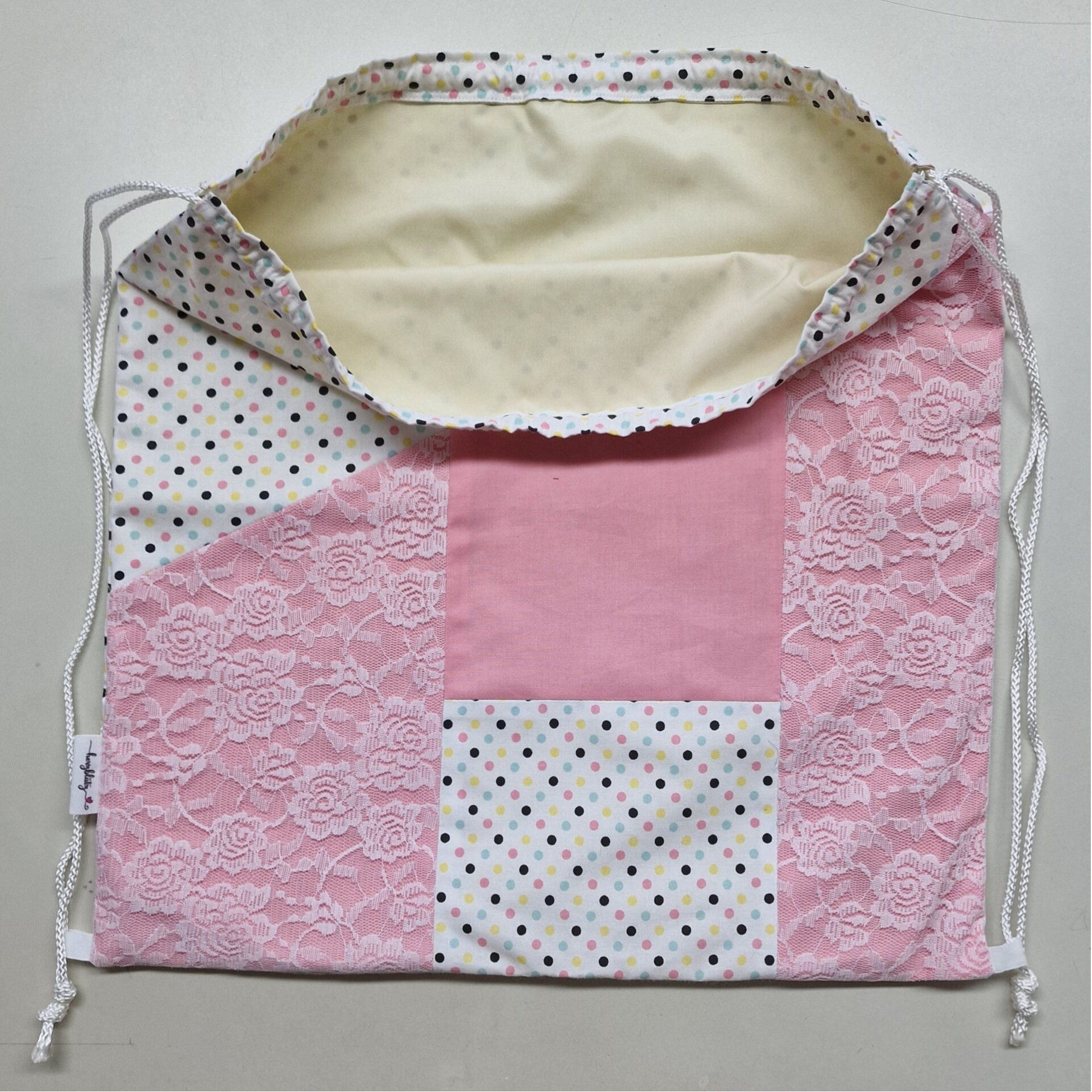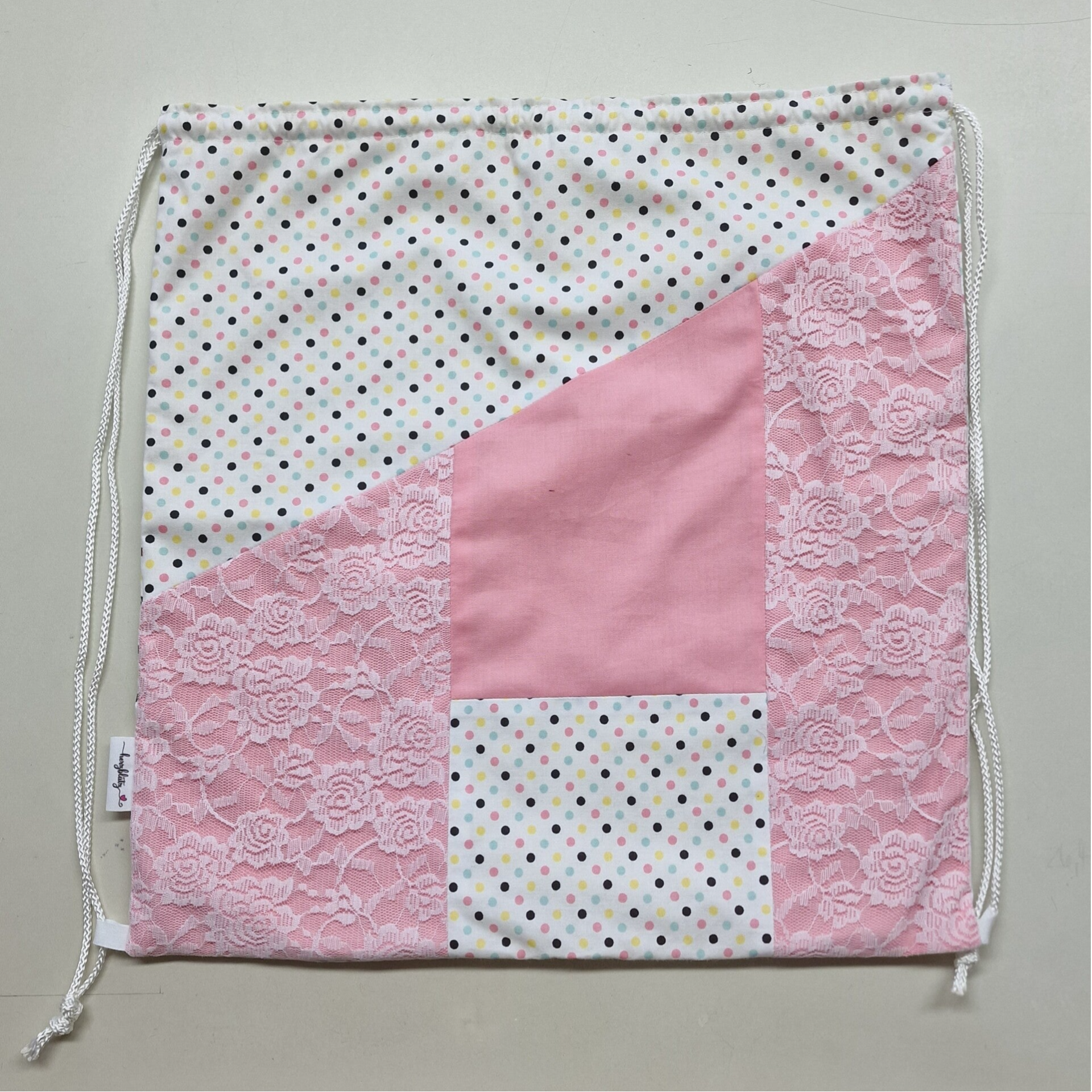 Bag aus Baumwolle mit Innenfutter. Dieser Bag in Rosa und Weiss-gepunktetem Stoff mit Spitze kommt sportlich-elegant daher.