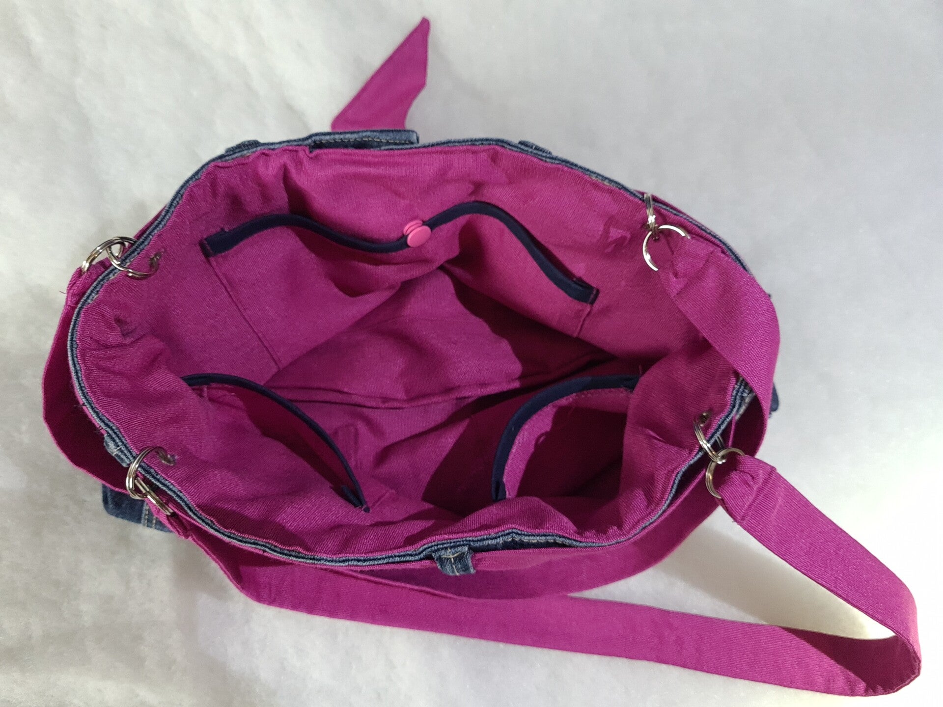 Diese kleine, handliche Tasche aus einer Jeanshose, bietet dank ihren Fächern den nötigen Platz für wichtige Dinge.
